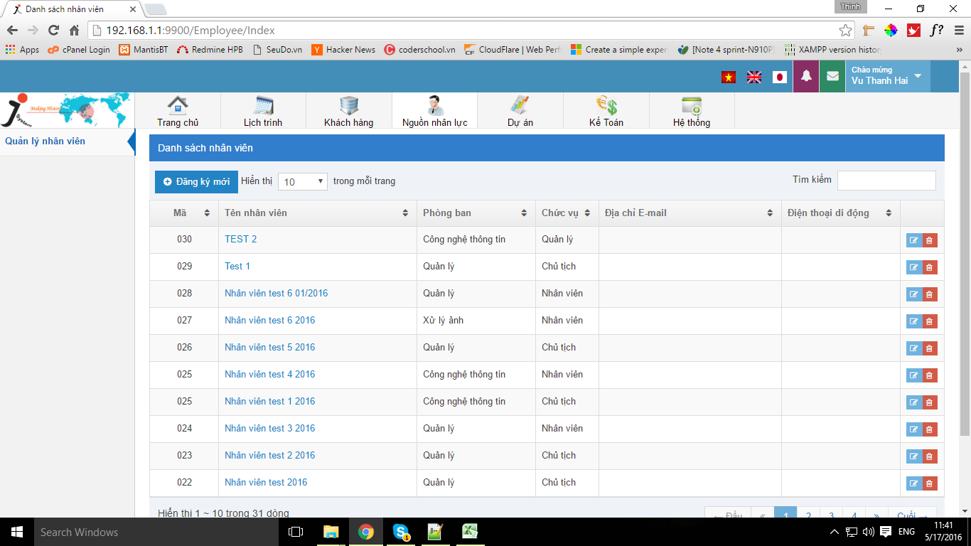 Quản lý nguồn nhân lực (nhân viên, thực tập sinh)